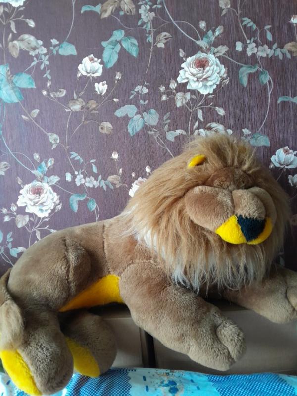 Игрушка почти новая,одинанс - это фото2, это отклеенные глаза, выпущенная оторвала. Длина 70см, ширина 50см.,высота 40см.Цина низкая по сравнению с настоящей ценой.