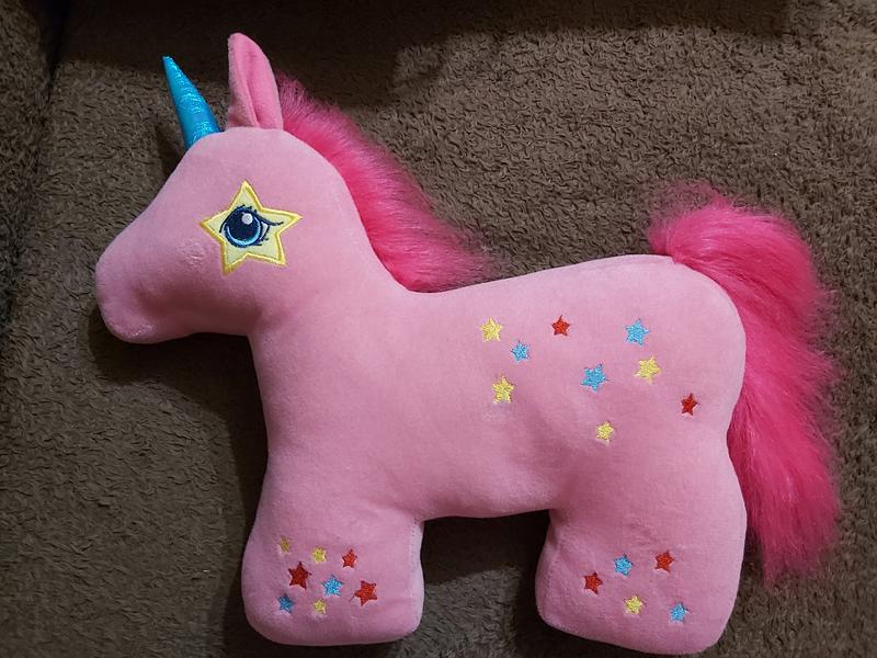 мягкая единорожка, подушка. На бирке есть еще пластиковые скобы, но бумажной бирки нет. Размеры Вымота 37см, ширина 40см