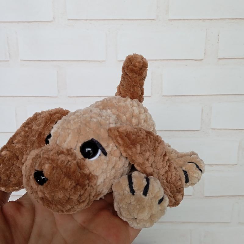 Игрушка мягкая вязаная плюшевая лежача собоковая