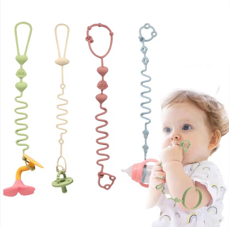 Набор универсальных силиконовых держателей для игрушек, соски или бутылочки 4 шт + 2 клипсы Практичный набор держателей-лент с силиконовым прорезывателем - настоящее спасение для мамы и малыша! Идеально подходит для того, чтобы подвесить игрушку, соску или бутылочку, не давая им падать или теряться во время прогулки. У комплекті: 4 регулируемые силиконовые держатели 2 надежных прозрачных клипсы Особенности: Универсальное крепление - подойдет для коляски, автокресла, кроватки или даже детского стульчика. Регулируемая длина - удобно настраивается под нужный предмет. Мягкий и безопасный силикон - подходит для использования в качестве прорезывателя для зубов. Прозрачные клипсы — не портят внешний вид, легко открываются взрослым, но надежные для малыша. Очень удобен в путешествиях и ежедневном пользовании — ничего больше не потеряется во время прогулки! Идеально подходит: для сосок, бутылочек, грызунков, погремушек, мягких игрушек и т.д. Рекомендовано с 0 месяцев Материал: безопасный пищевой силикон + пластик Количество в наборе: 4 держателя + 2 клипсы