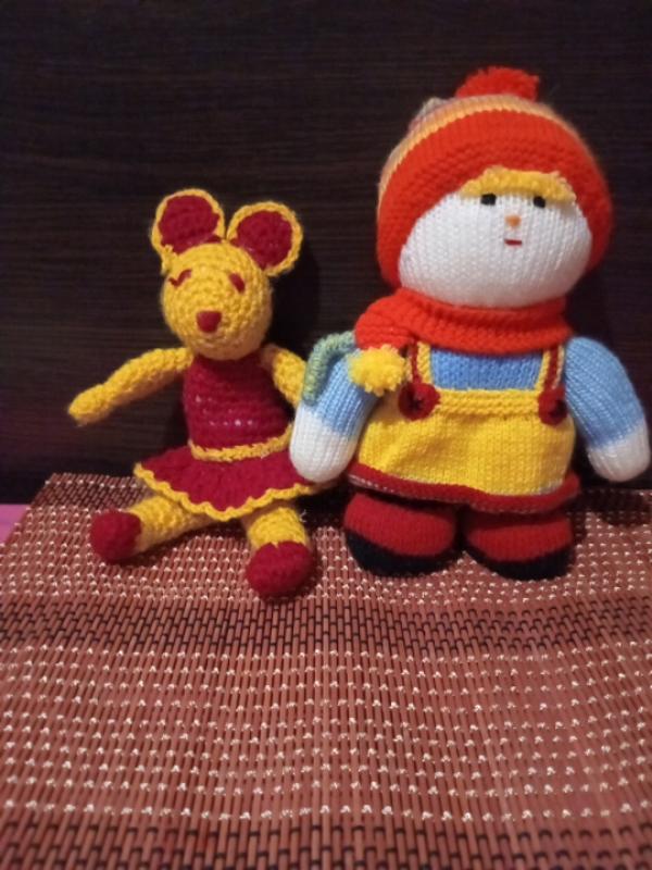 вязаные игрушки.хендмейд.ручная работа.оченьп мягкие.девочка и зайчик по 330.мишка 120.лотом 670гр.