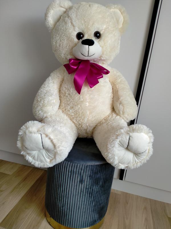 Мягкая игрушка медведик, белого цвета, не пользуется, с снаружи очень милый на вид и прикосновение, большого размера.Довжина от лапок до ушки 90 см.