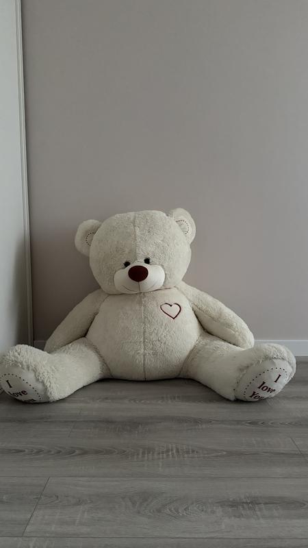 Великий плюшевий ведмедик молочного кольору, висота від підлоги 72-73см