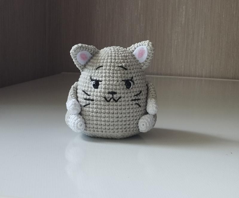 Котик вязаный крючком (амигуруми). Высота игрушки 12см, наполнитель холлофайбер, глаза на безопасном креплении.