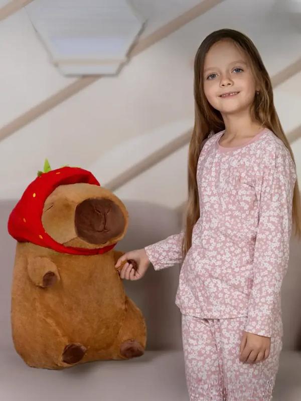 Плюшевая игрушка капибара 45 см клубничка для детей большая мягкая детская игрушка капибар...