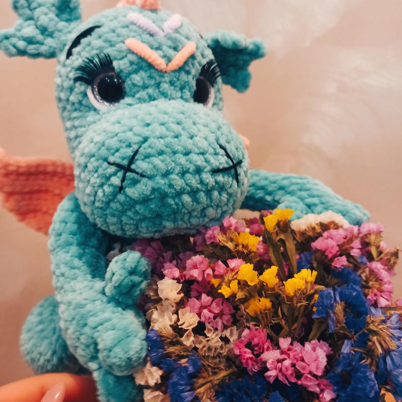 Игрушка дракочик🐉 из плюшевой пряжи, длина 32 см, глазки на безопасном креплении. Игрушка на фото в наличии, если требуется в другом цвете срок отправки 5-7 дней. Отправка возможна новой почтой и укроштой оплата возможна накладным платежом или на карту. Отправка новой почтой по предоплате