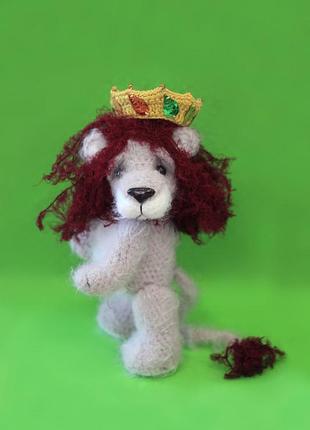 Мягкая игрушка львенок в короне, размер 20 см. Голова на шплинте, поворачивается. Внутри каркас из медной проволоки, лапки сгибаются. Корона снимается. Носик из полимерной глины. Стоит самостоятельно. Связан из пушистой акриловой пряжи, грива из технопуха. Подарочная упаковка, ручная работа.