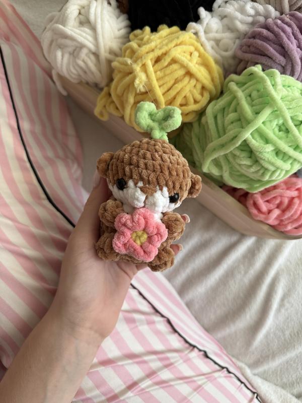 Ця чарівна видрочка виготовлена з гіпоалергенних, м’яких і приємних на дотик матеріалів, тому чудово підходить навіть для найменших діток. У лапках вона тримає ніжну квіточку, що додає їй особливого тепла та ніжності. 🌼 Очі на безпечному кріпленні, тож іграшка повністю безпечна для малюків. 💛 Маленька видра стане милою прикрасою дитячої кімнати або теплим подарунком, зробленим з любов’ю. 🎁