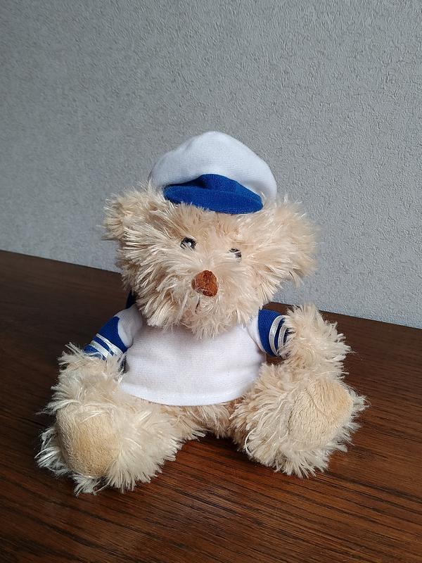 М'яка іграшка ведмедик-моряк. Висота в сидячому положенні 16 см. В ідеальному стані