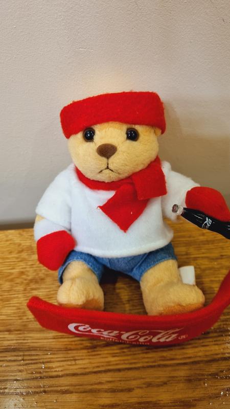 Мягкая игрушка, мишка из коллекции корпорации Coca-cola, мишка на скейтборде с бутылочкой Coca-cola.