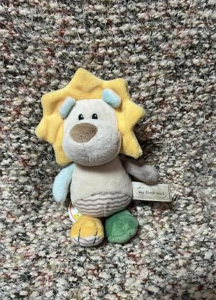 Музичний Лев від фірми Nici, колискова для малечі. Розмір - 23 см, мʼякий, має два шнурочка для того, щоб привʼязувати. Очі - вишиті. Від 0+.