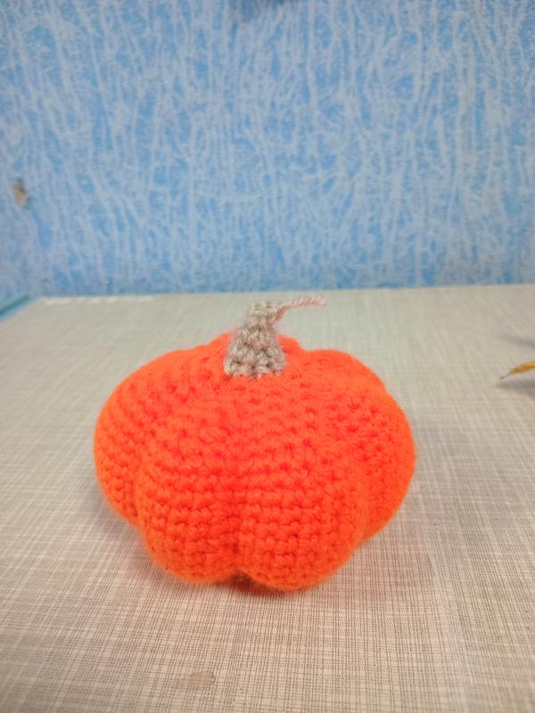Мягкая игрушка тыквы. Выполнена из гипоаллергенной пряжи и гипоаллергенного наполнителя. Размер 12 см. Можно стирать в стиральной машине на деликатном режиме. Подходит для детей от рождения.
