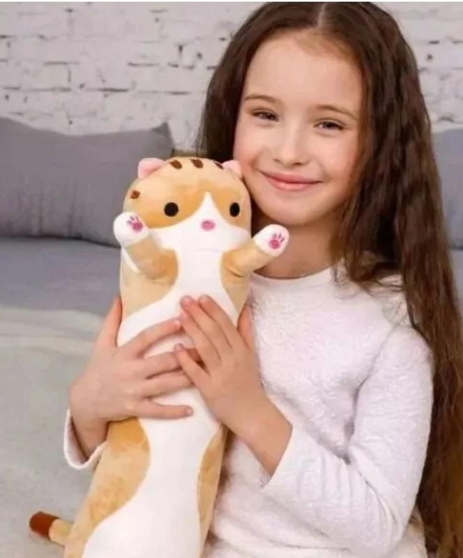 подушки, мягкий и приятный на ощупь Кот, подарит Вам море сладких снов. Преимущества: Можно использовать как подушку Плюшевый кот станет отличным подарком Мягкая игрушка кошка сделана из качественных материалов Можно стирать в машине Описание: Очень мягкий, очень приятный, длинный кот игрушка подушка. Мягкая игрушка подушка длинный кот, это идеальный подарок, который точно оценят и запомнят надолго! А еще с котиком так приятно обниматься, что не хочется его выпускать из рук! Очень мягкая набивка, просто созданная для отдыха и релакса. Этого длинного котика можно использовать как игрушку, подушку для сна, подушку для кормления, подставку под спину, для декора интерьера. Кот мягкая игрушка идеально в качестве подкладки под живот для беременных женщин на поздних сроках. Характеристики: Тип: Мягкая игрушка, мягкие игрушки котики Вид мягкой игрушки: Кошка Длина: 50 см Цвет: серый, коричневый Возраст: от 3-х лет Материал: плюш+синтепон Комплектация: Игрушка Кот Батон 50 см Упаковка
