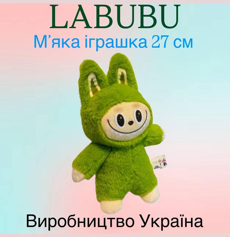 М'яка іграшка лабубу 27 см виробництва україна колір зелений labubu мила хутряна іграшка
