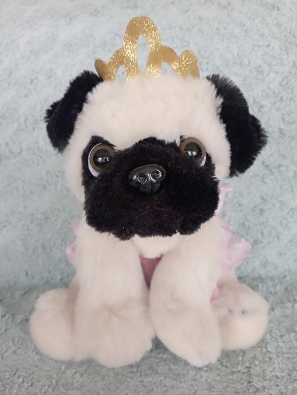 Мягкая игрушка собачка мопс -принцесса фирмы With Snuggles в новом состоянии, очка и носик пластиковые, невероятно милая, мягкая и приятная на ощупь игрушка, имеет на голове прикрепленную корону, облаченная в розовую юбочку, высота игрушки 25 см.