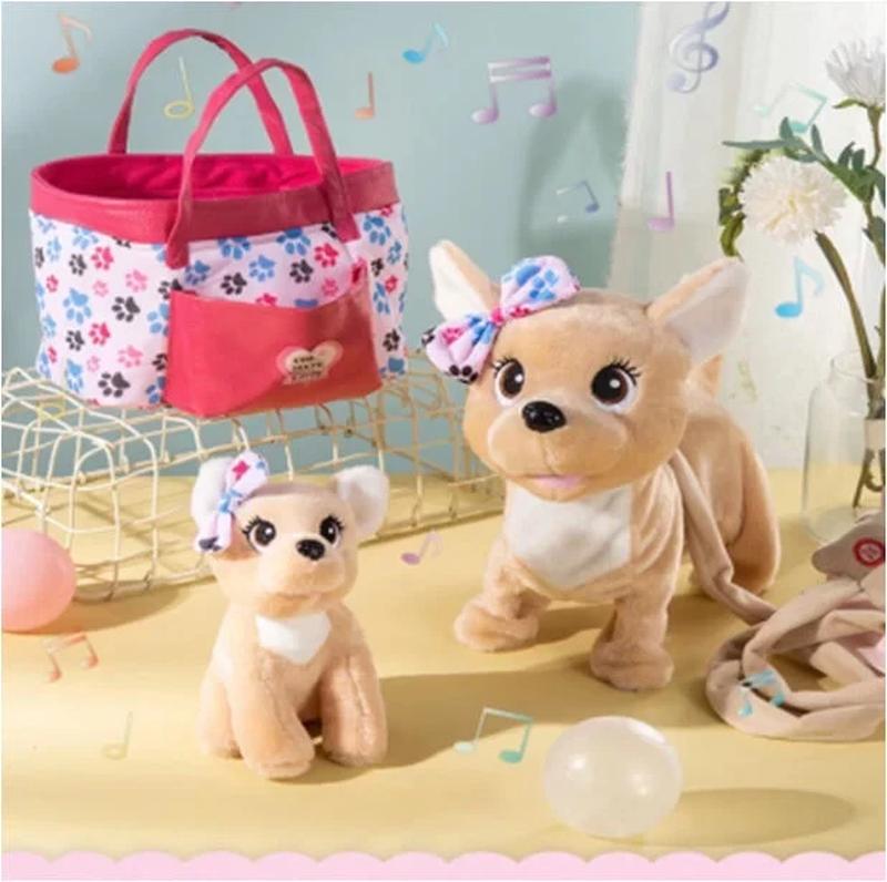 Кожній дитині потрібен друг, з яким вона буде весело проводити час. А хто, якщо не цуценя, здатне подарувати малюкові радість та нестримні веселощі? Пухнастий вихованець на повідку - стане найкращим і вірним другом, з яким можна грати не тільки вдома, але й разом ходити на прогулянку! Собачка вміє ходити, співати і мило виляти хвостиком. Особливості: - розмір - 27х12х26 см; - у плюшевого звірка м'яка і дуже ніжна на дотик шерсть; - в комплектацію входить містка сумочка-переноска; - маленьке цуценя у комплекті; - на повідку розташована кнопка, яка активує рух та спів англійською мовою; - працює від 3-х батарейок "АА" (не додаються); - оригінальний плюшевий песик стане справжнім другом для юної принцеси. Матеріал : Виробник : -