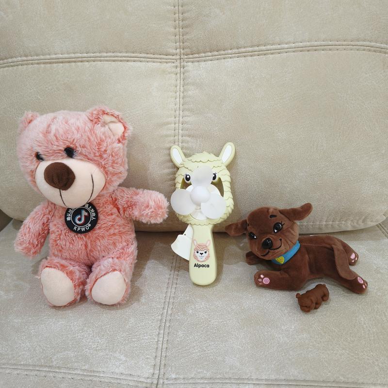 Набор мягких игрушек и ручной детский вентилятор. В идеальном состоянии, все игрушки чистые, без нюансов. В набор входит: мягкая игрушка мишка, мягкая игрушка собачка с малышом в животике и детский вентилятор. Цена 250 грн. #viktoriya_bendova_tkachuk