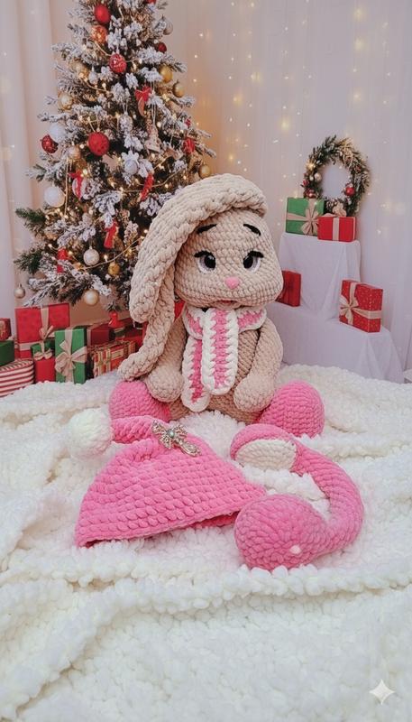 Чудова м'яка плюшева іграшка Зайка Вона неймовірно красуня. Стане Улюбленицею для вашої Принцеси. Подаруйте друга своїй дитині. Комплекті Іграшка+ навушники +шапочка +шарф. все знімається. Є ВІДЕООГЛЯД пишіть скину у приват Розмір іграшки 30см з шапочкою 35см шапочка та шарф з'ємні Матеріал: плюшева пряжа YarnArt Dolce Наповнювач холофайбер. Очі на безпечному кріпленні Зроблено якісно та з любов'ю 🩷