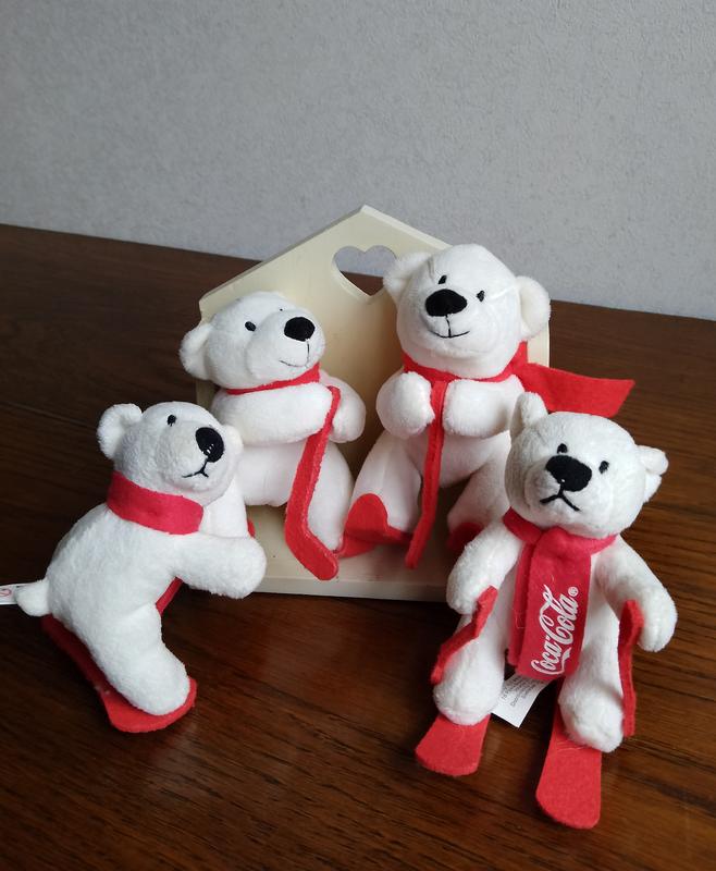 Коллекционные мишки от Coca cola (без подставки). Комплект: 2 мишка-хокеиста, 1 на лыжах, 1 на сноуборде Высота мишек 10 см В идеальном состоянии Цена при 4 шт 200 грн Цена за 1 шт 50 грн