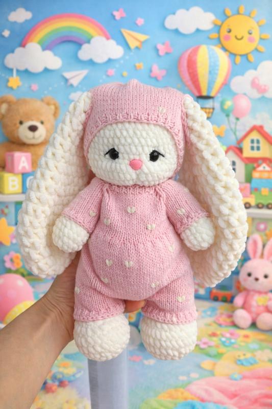Зайчик висотою 30 см, одяг знімається, якісна гіпоалергенна пряжа. Зроблено з любов’ю
