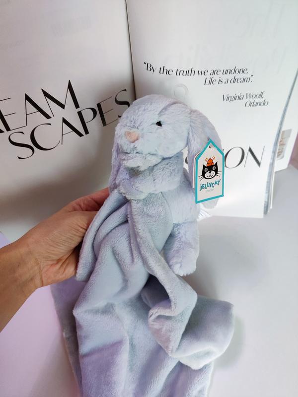 Мягкая игрушка-комфортер зайка от Jellycat. Очень мягкий и приятный на ощупь. Премиальное качество. Нежно-голубой цвет. Размер комфортера: 32*32 см., размер игрушки: 12 см. Новый, с биркой.