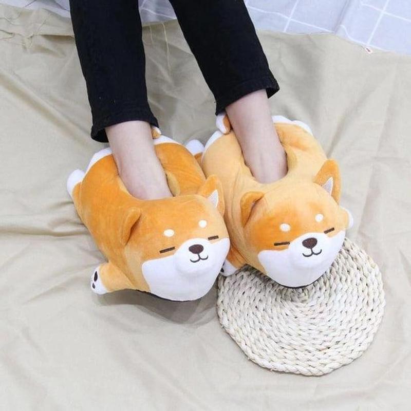 Тапочки плюшевые собака корги 35-41 ( 27 см)