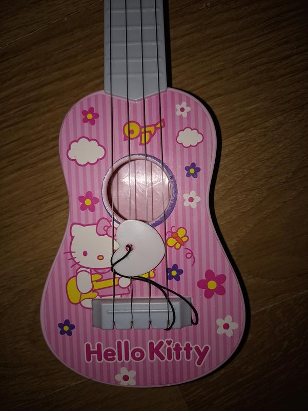 Гитара детская акустическая Хэллоуин Китти. Детская четырехструнная гитара прекрасно подойдет для знакомства юного гитариста с музыкой. Музыка – одна из важнейших составляет воспитание ребенка. Раскройте творческий потенциал ребенка с помощью интересного игрового музыкального инструмента. Основа - пластик, струны - металлические. Медиатор. Колки для регулировки натяжения струн. Длина - 32см, ширина - 10см. Состояние хорошее.
