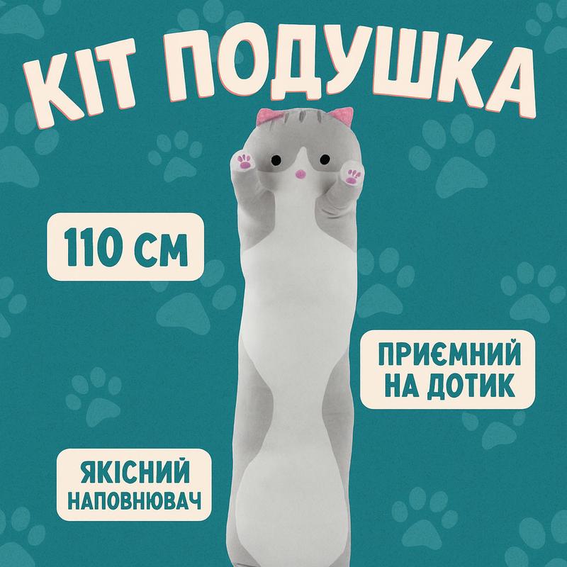 Детский кот батон 110 см, мягкая игрушка кот-обнимашка, мягкая игрушка-подушка кот батон к...