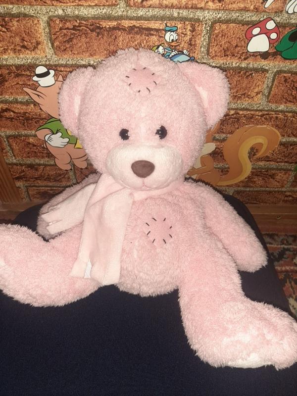 Розовый мишка в латочках под тедика в шарфике, как игрушка и рюкзачок для маленькой прицески - очень омерянная вещь! Размер 40×37см