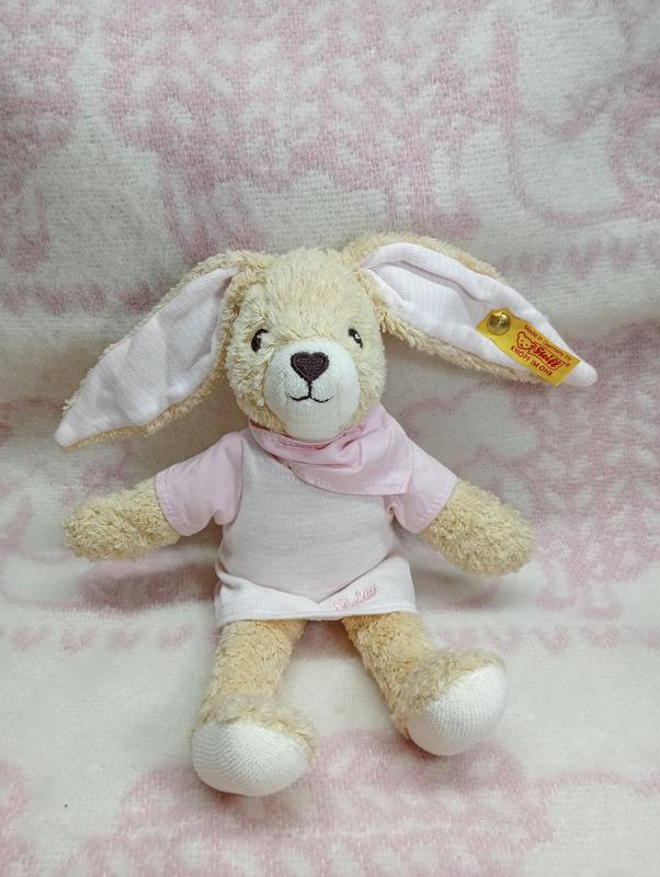 Махровый зайчик Steiff в новом состоянии, бирочка на ушку есть, бумажной нет, но виден что зайчик не гранул, можно на подарочек.