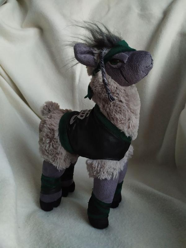 Мягкая игрушка «Лама-ниндзя» от Classy Llama. Высота - 30 см. Очень детализированная, с аккуратными элементами и ярким дизайном. В отличном состоянии, без повреждений. Оригинальный вариант для подарка или коллекции.