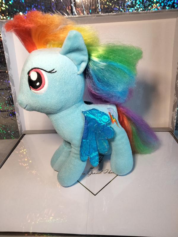 Мягкая игрушка My Little Pony Rainbow Dash (Веселка Деш). Игрушка изображает популярного персонажа из мультсериала "Дружба — это чудо". Изготовлена из мягкой, приятной на ощупь ткани. Имеет разноцветную гриву и хвост цветов радуги. Крылья имеют блестящую текстуру. Состояние удовлетворительно. Высота 25 сантиметров.