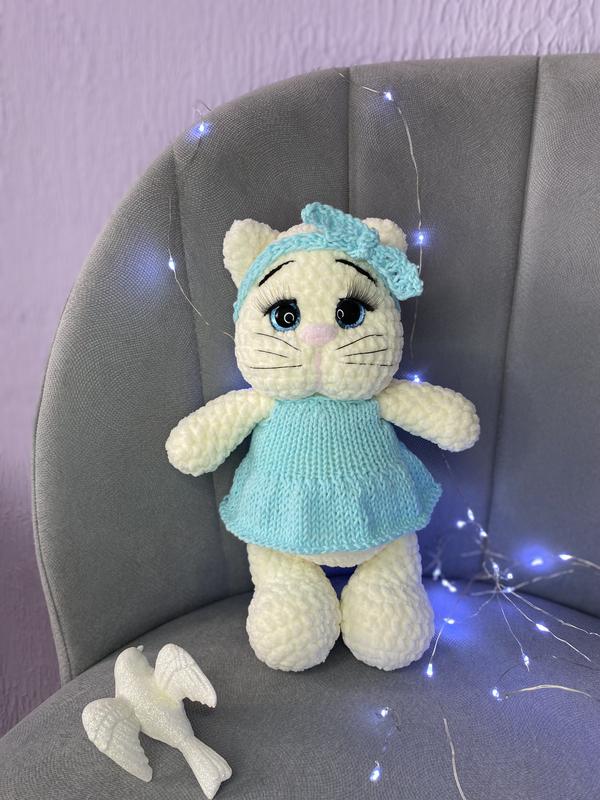 Мʼяка іграшка ручної роботи. Зроблена з плюшевої пряжі, наповнювач холофайбер. Висота іграшки 26-27 см. Суконька знімається.