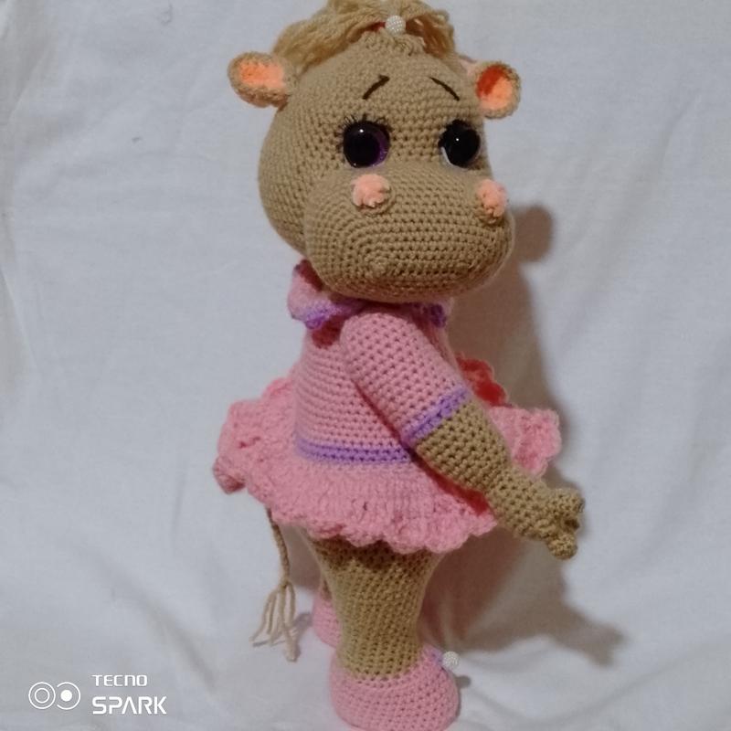 Іграшка ручної роботи. Бегемотик Лілі. Зріст 38 см, Очі на безпечному кріпленні. Голова та руки рухаються.