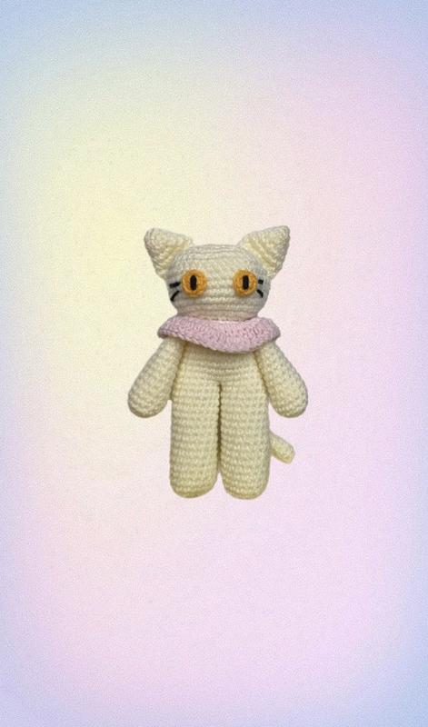 Котик з комірчиком 🐈 Іграшка у висоту 15 см Виконана з акрилової нитки та заповнена холофайбером (нитка може бути змінена на плюшеву +250 до ціни) Хвостик з проволокою, тому гнеться як заманеться :) Колір котика, очей та комірця може бути змінений за бажанням:)