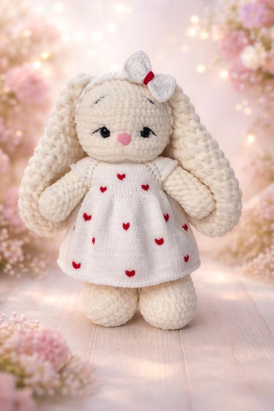 Зайчик 30 см висотою, сукня знімається, якісна гіпоалергенна пряжа, створена з любов’ю