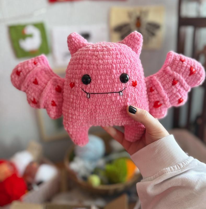 Мʼяка плюшева іграшка ручної роботи Розмір 19х34 см Матеріали: плюшева пряжа, пластикові очі на клею, наповнювач холофайбер