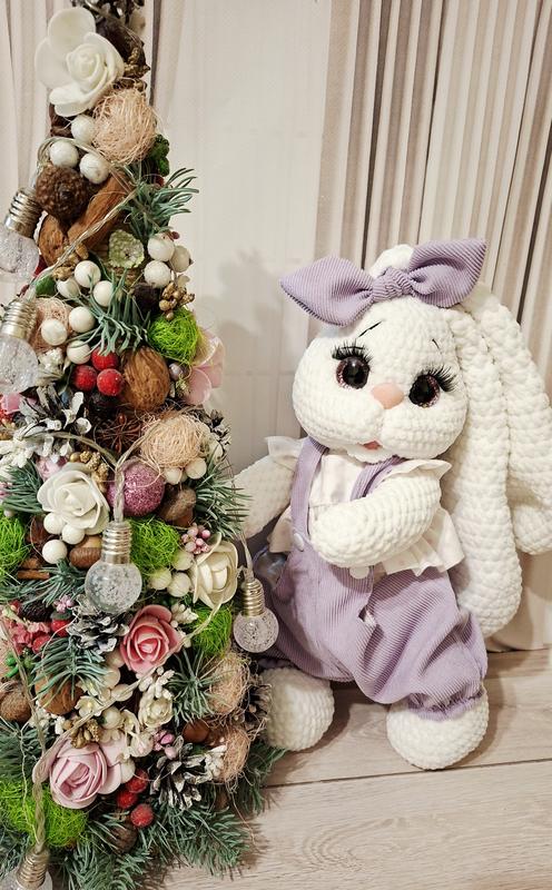 Вязаный зайчик в комбинезоне. Голова, лапки подвижные, одежда снимается.
