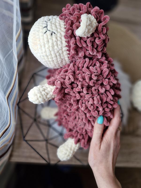 Этот плюшевый баранчик ручной работы – настоящая мечта! 🐑 Кудрявый, мягкий и такой приятный на ощупь, что его просто не хочется выпускать из объятий. 🥰 Изготовлен из качественной плюшевой пряжи и наполнен гипоаллергенным холлофайбером, он станет идеальным другом для вашего ребенка или отличным подарком для близких. Высота игрушки 40 см, а еще есть возможность заказать ее в других цветах! 🌈