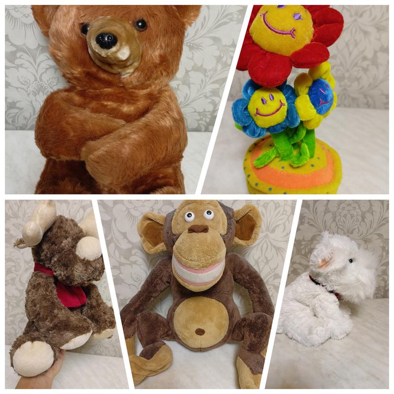 Игрушки в идеальном состоянии Медведик 300 грн высота 35 см Обезьянка 300 грн высота 30 см Лось 200 грн 32 см Цветы 100 грн 26 см Песик (новая) 500 грн 27 см тяжелая можно использовать, как упор для книг или даже дверей