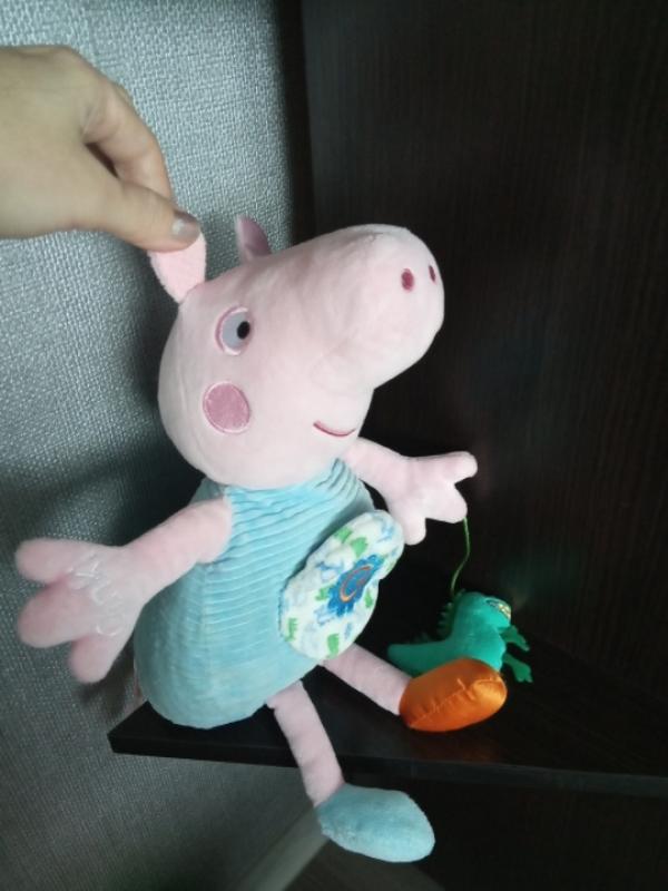 в отличном состоянии, при нажатии на ручку смеётся, динозавр пищит, на животике типа детского зеркала, на липучке,35 см, оригинал