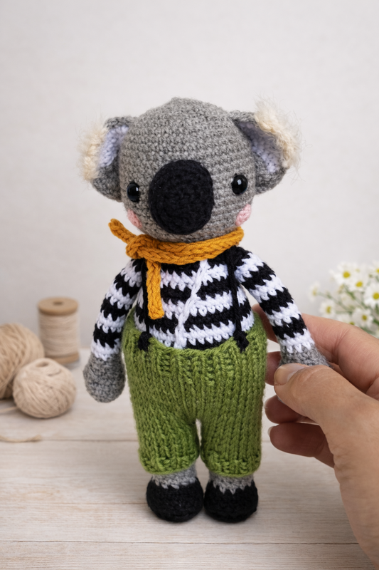 в’язана іграшка коала амігурумі в стильному одязі (ручна робота)