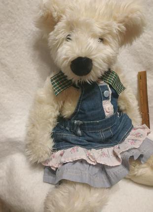 Белая мишутка в джинсовом платице