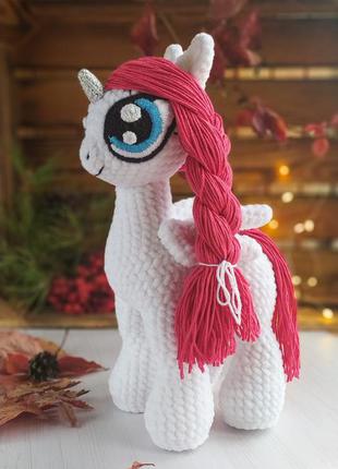 Поні ручної роботи. Зріст 35 см Матеріали: пряжа м'яка, плюшева, повністю гіпоалергенна, наповнювач холофайбер. Очі в'язані з хлопкової пряжі Можливий повтор у кольорах за бажанням. Термін виконання повтору 2-4 дні. Доставка Укрпошта, Нова Пошта, Justin. Оплата на картку або післяплатою. Якщо потрібна додаткова інформація – пишіть все надам.