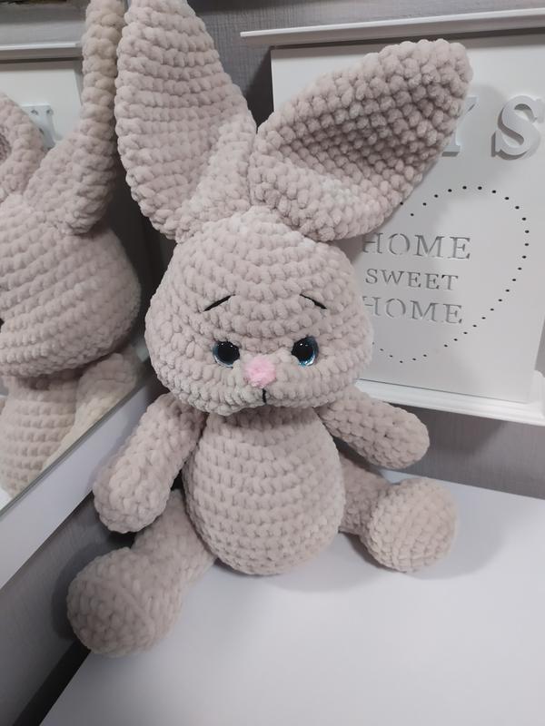 Вязанный зайчик выполнен из гипоалергенной детской пряжи. размер 30 см. цвет на выбор