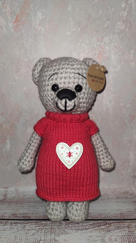 Красивая девочка,в красном платице,связана из полушерсти,внутри холлофайбер, глазки на безопасном креплении Высота 23см