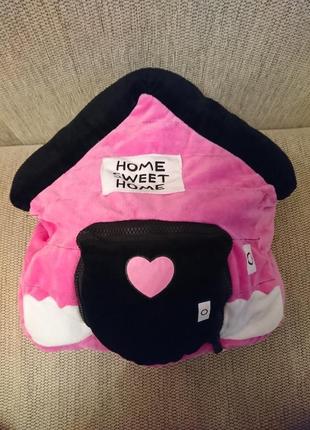 Подушка іграшка. Дуже оригінальна. У віконці під замочком живе досить велика м'яка плюшева бджілка.))) Дивіться всі фото як вона з'являється. Стан відмінний. Розмір в складеному вигляді домика37*37. Музична, натискати на білий квадрат, і видає звуки Розмір бджілки від голови до ніжок 50 см
