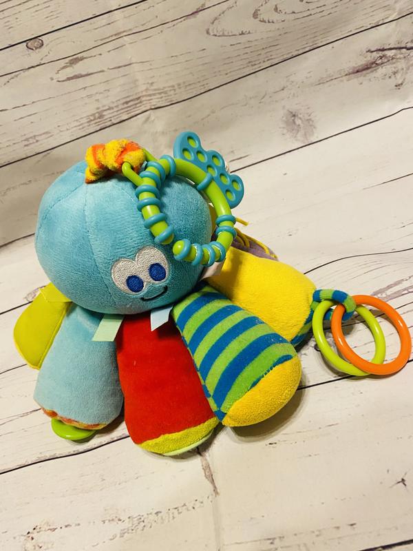 Осьминог мягкий,каждая его ножка спешит порадовать вашего малыша: шуршащая,зеркальная,с пуговицей,со шнуровкой,с погремушкой,с колечками,с шариком.Все это поможет малышу почувствовать окружающий его мир и тренировать мелкую моторику рук.Отправляю новой почтой с предоплатой либо встреча в Днепре