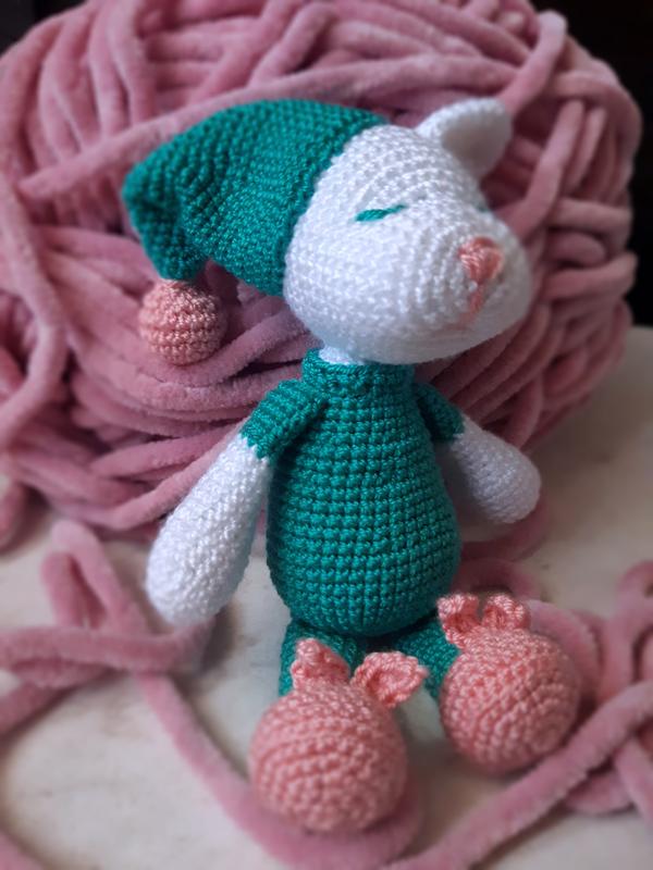 Іграшка ручної роботи. Розміри: висота 13 см, сидячи - 9. Наповнювач: холлофайбер. Гіпоалергенний, швидко сохне, тому можливе ручне прання.