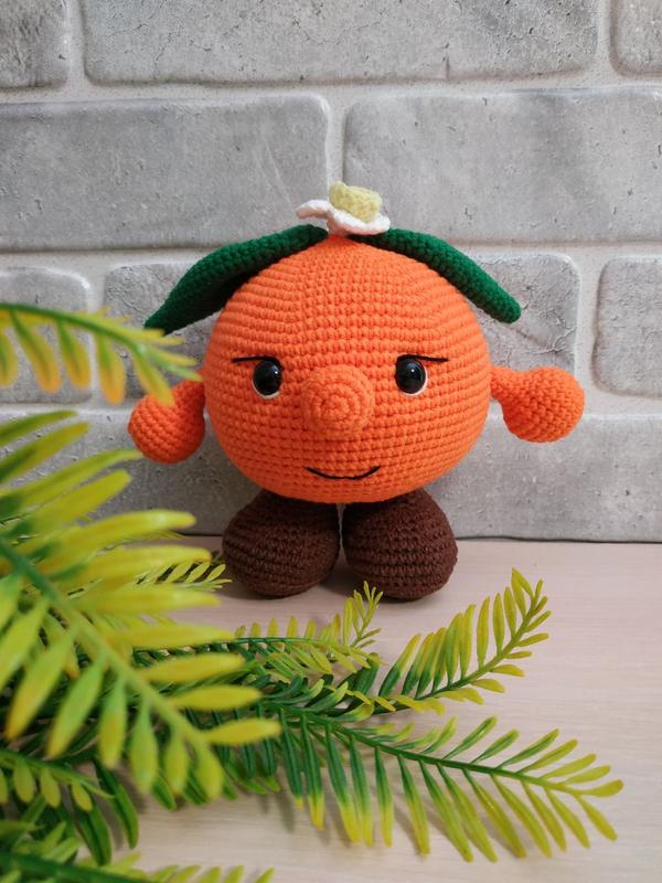 Апельсинчик вязаный крючком. Рост - 15 см, ширина игрушки с ручками - 17 см. Ручная работа. Все детали надежно пришиты, глазки на безопасном креплении. Наполнитель - холлофайбер. Рекомендации по уходу: ручная стирка.